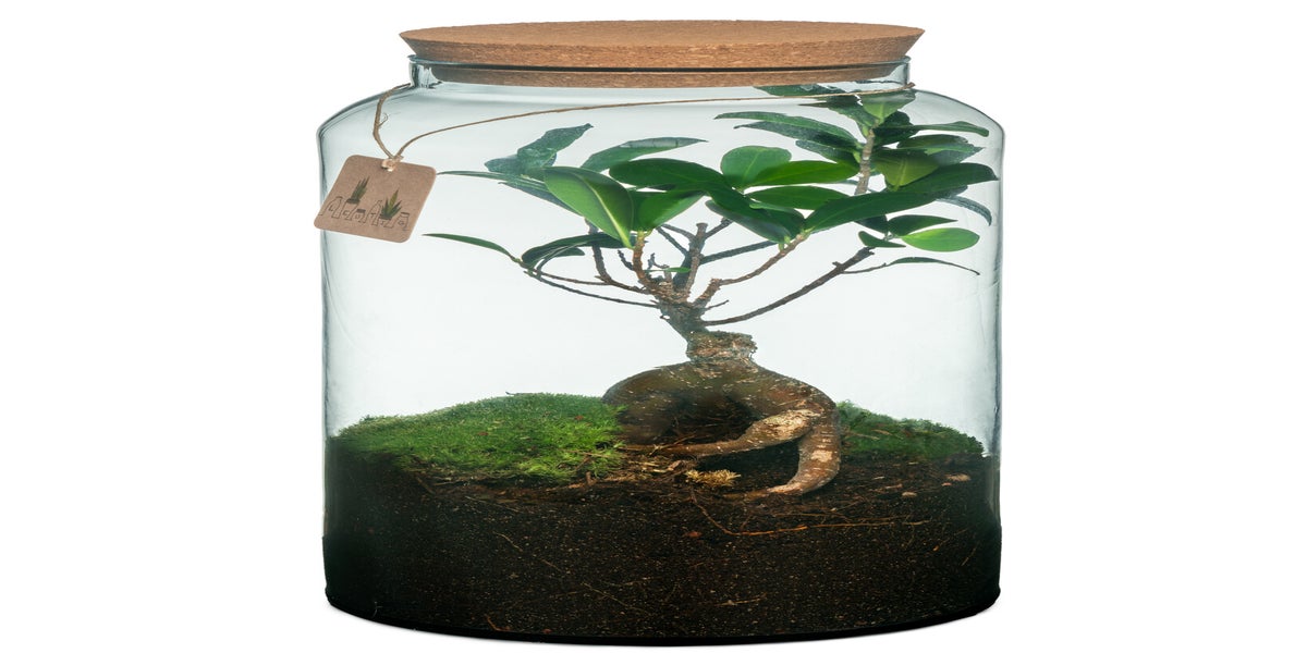 - Geef me geen extra water. Het terrarium heeft bij aankoop voldoende vocht om de eigen waterhuishouding te regelen.